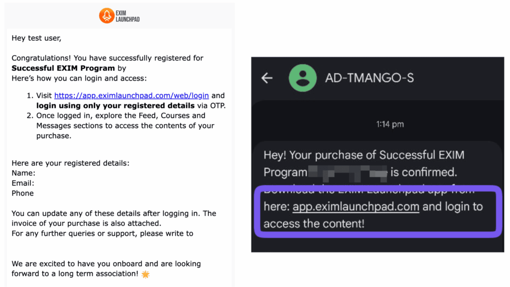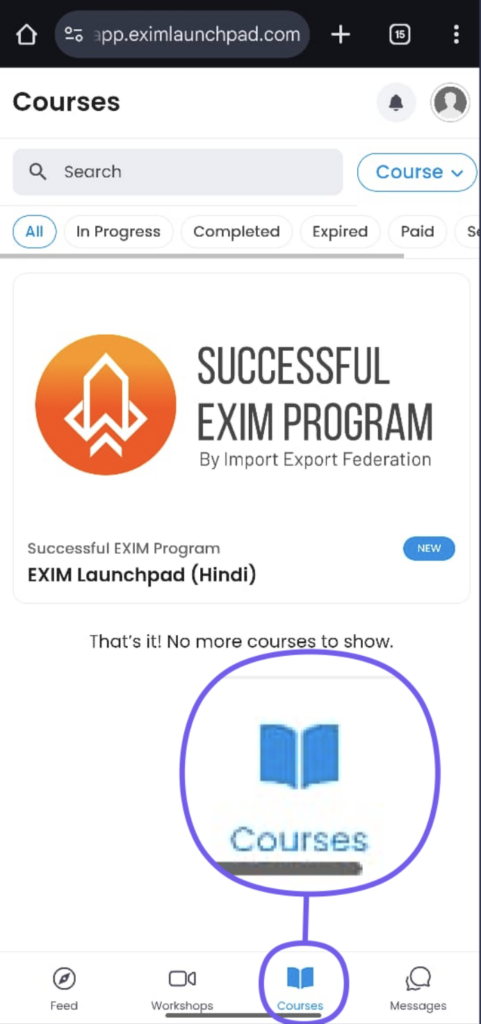 Step #4 : Tada! Your Course is now available to you & Let the. EXIM journey Begin!